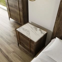 Best deal 🌟 Ashcroft Cooper Mid Century Modern Walnut Nightstand Bed Side Tables With 1 Drawers ❤️