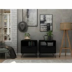 Wholesale โค๏ธ Eden Home Mid-Century Modern Wood 2 PC 1 Drawer Nightstand Set In Black ๐คฉ