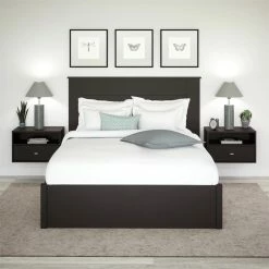 Wholesale โค๏ธ Prepac Hanging Nightstand With Open Shelf Black Engineered Wood-Set Of 2 ๐