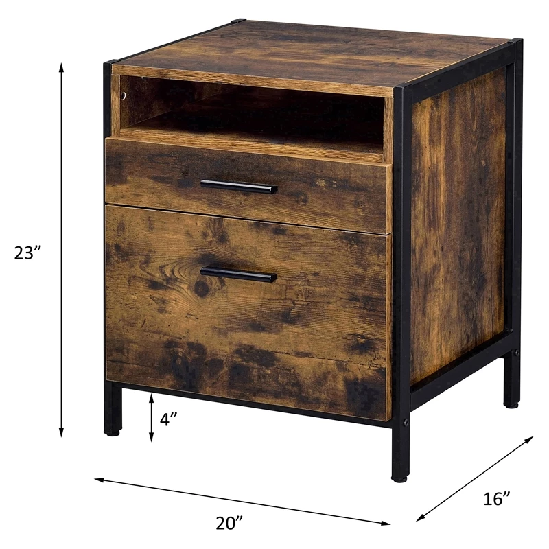 A stylish and functional addition, the Juvanth Nightstand brings more into your bedroom. Freshen up your living space with the raw character of the industrial look that celebrates worn texture and unexpected materials. The nightstand features strong and clean lines on black metal frame and the wooden storage section is designed to have a distressed look that feels warm and livable. One open compartment with two storage drawers in different sizes meet your various storage needs.