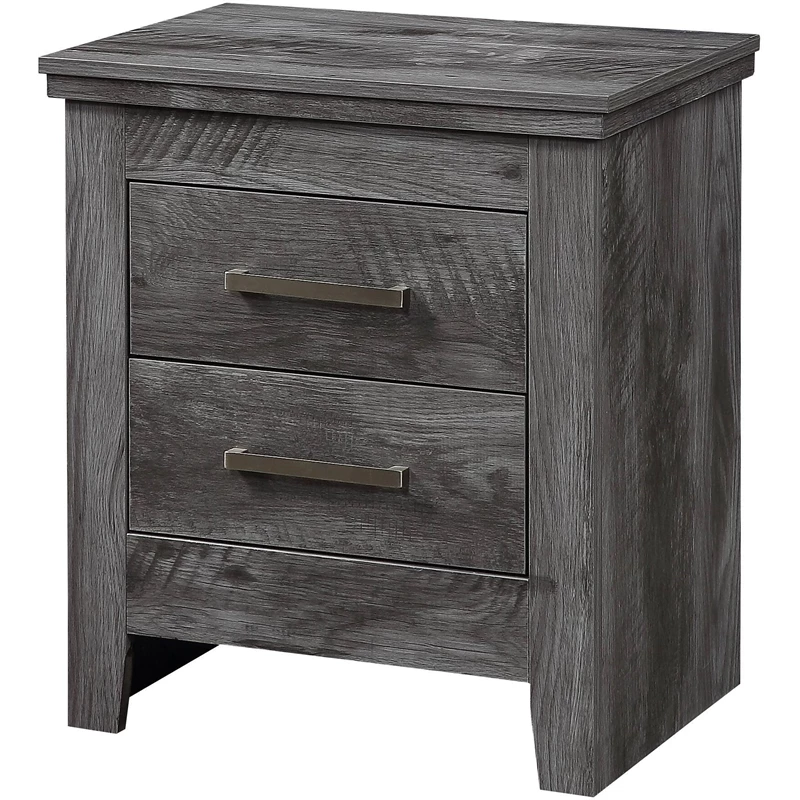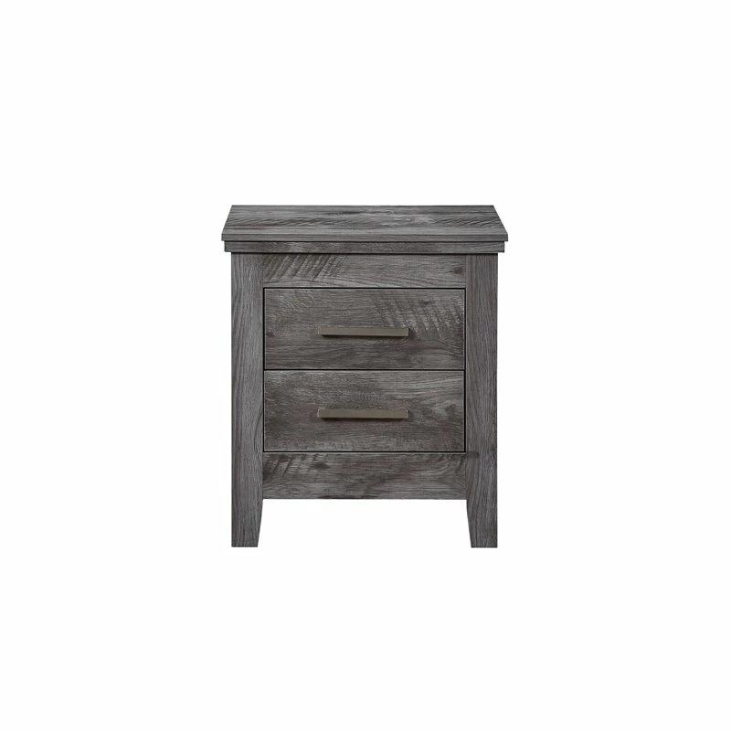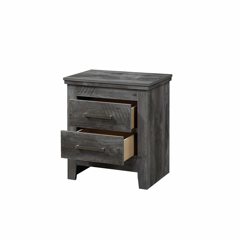 Simple and extremely rustic, the Vidalia nightstand conveys the character of rugged simplicity in living close to nature while maintaining stylish comfort. A clean-lined cuboid body stands on a wooden sled base. Gray oak finish paints the whole casegood, enhacing the surface with beautiful wood texture . There are two storage drawers with metal bar pulls for extra style and storage space. Let the Vidalia Nightstand take you back to a carefree era when life was tranquil and relaxing was easy.