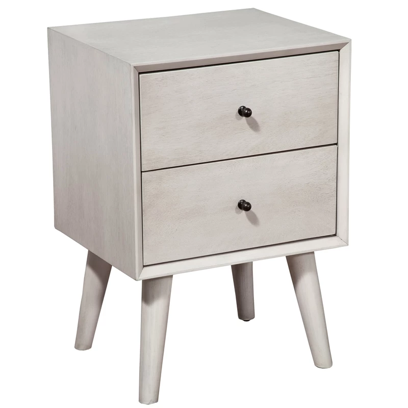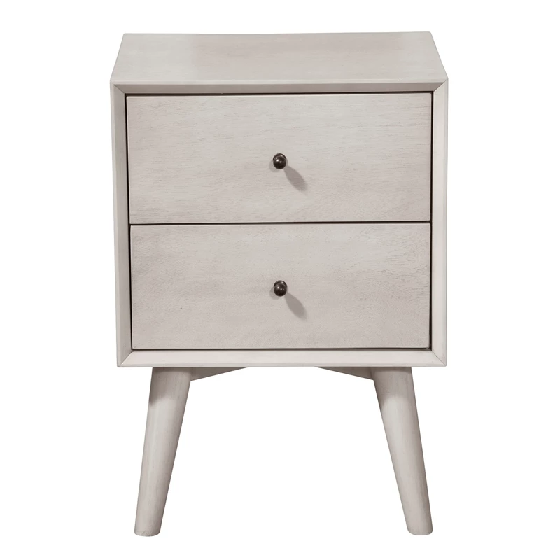The Flynn collection features the classic lines of Mid-Century Modern furniture that never goes out of style. Its sturdy frames are built to last, constructed of sustainably sourced solid Mahogany to ensure a lifetime of use. The Flynn nightstand has two drawers to accommodate most bedside necessities. The nightstand comes fully assembled, and is constructed with ball bearing metal drawer glides and French & English dovetail drawer construction. The Flynn bedroom makes it easy to create a cohesive decorating style or mix and match for a more personalized look. Coordinates with other pieces in multiple finish options as part of the Alpine Furniture Flynn collection sold separately.