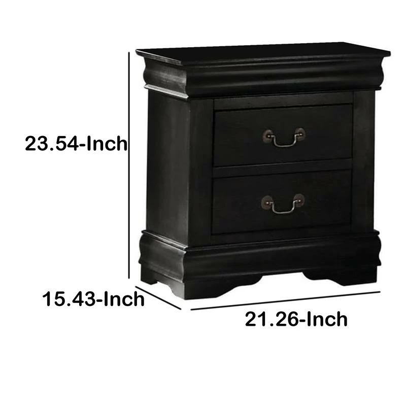 Best deal ๐งจ Benzara Liam 23 Inch 2 Drawer Wood Nightstand Antique Style Drop Handles Black ๐