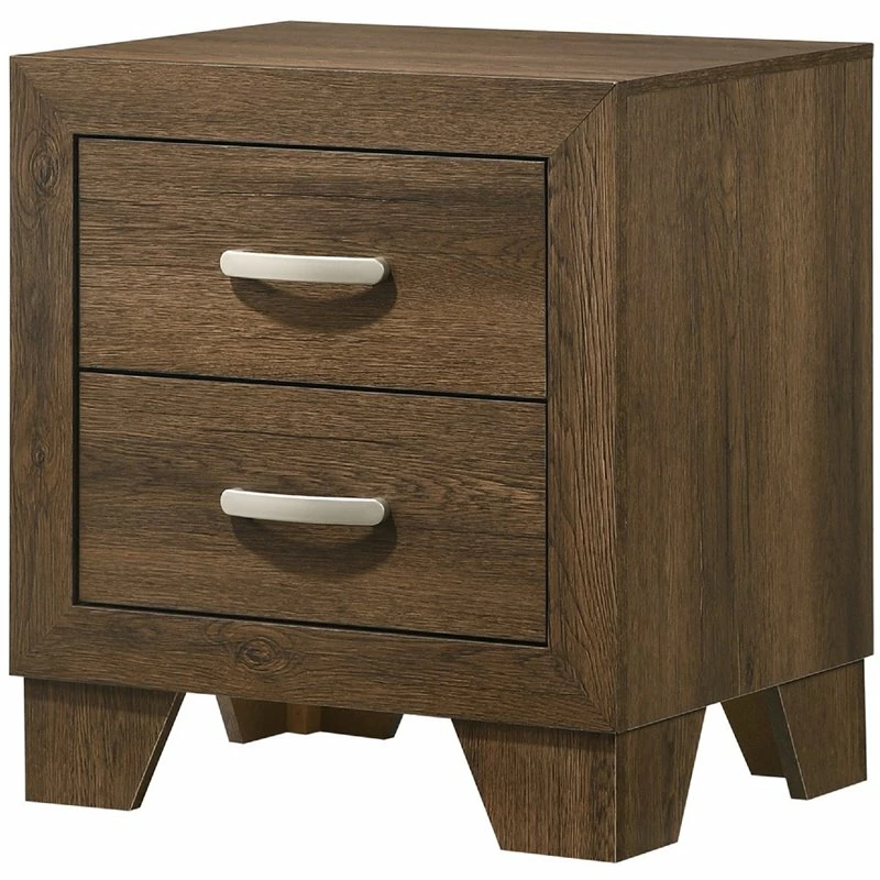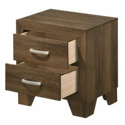 Add a transitional flair to your home with the inclusion of this sophisticated nightstand. Constructed from solid wood, composite wood and veneer, it features 2 spacious drawers with metal handles and showcases natural grain details. It is supported by bracket legs, providing stability and durability.