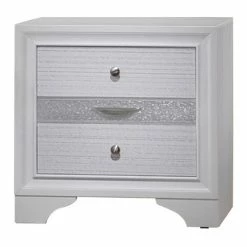 This naima collection nightstand harmonizes contemporary details with functional design to accommodate today’s styles. This piece features 3 jewelry drawer with compartments along with center metal glide, felt lined jewelry drawer, dovetail front English back which makes it truly elegant and will be a great addition to your home.