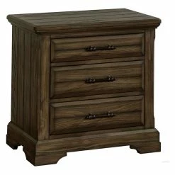 Add utility and storage space to your home to the beautiful and stylish nightstand that has a bracket feet support. The three drawer nightstand consists felt lined drawers providing enough storage and its brown finish adds to its charm. This is a must have piece if you are a style lover.