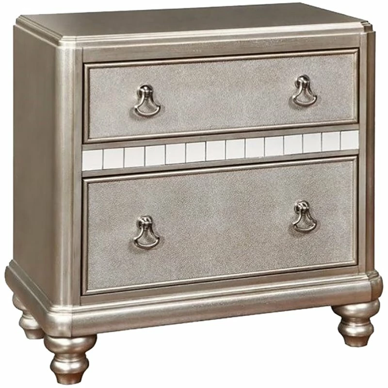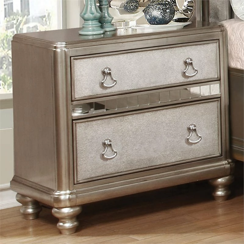 Lowest price online On all Bowery Hill 2 Drawer Nightstand in Metallic Platinum and Silver – BH-641471