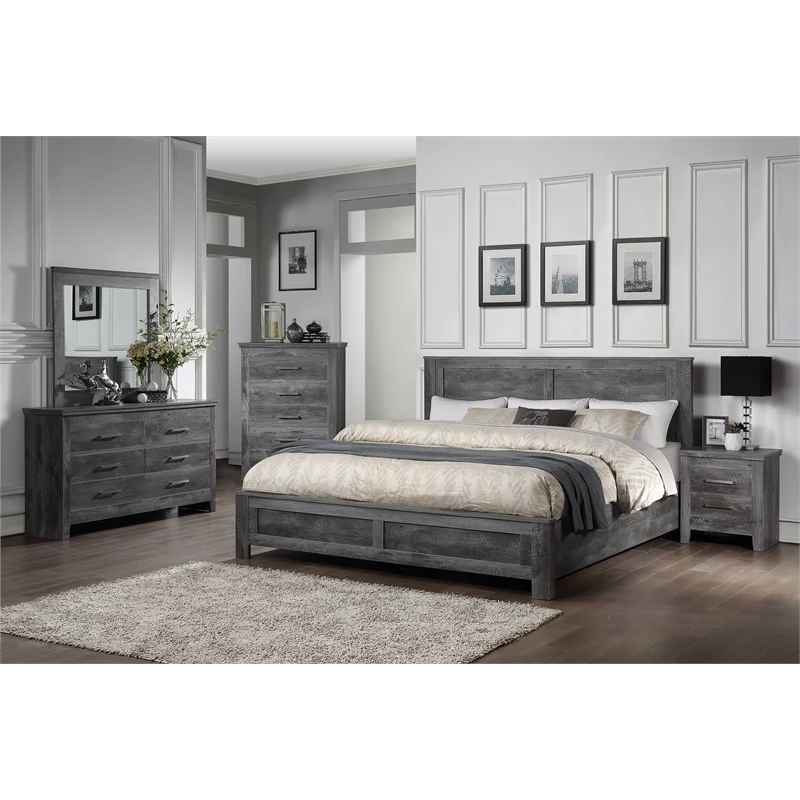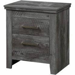 Simple and extremely rustic, the Bowery Hill nightstand conveys the character of rugged simplicity in living close to nature while maintaining stylish comfort. A clean-lined cuboid body stands on a wooden sled base. Gray oak finish paints the whole casegood, enhacing the surface with beautiful wood texture . There are two storage drawers with metal bar pulls for extra style and storage space. Let the Bowery Hill Nightstand take you back to a carefree era when life was tranquil and relaxing was easy.