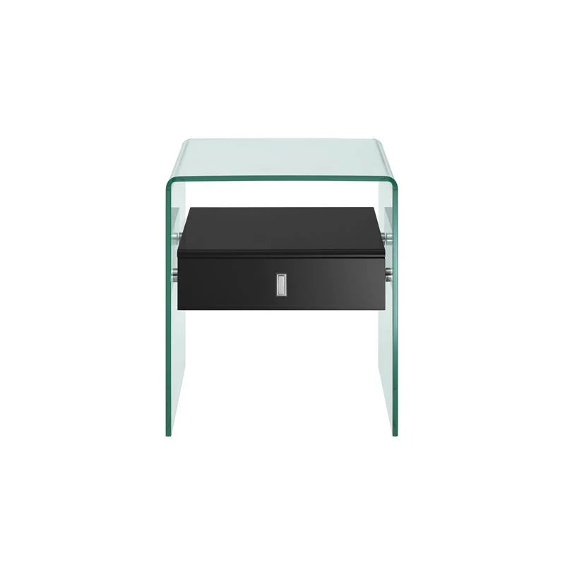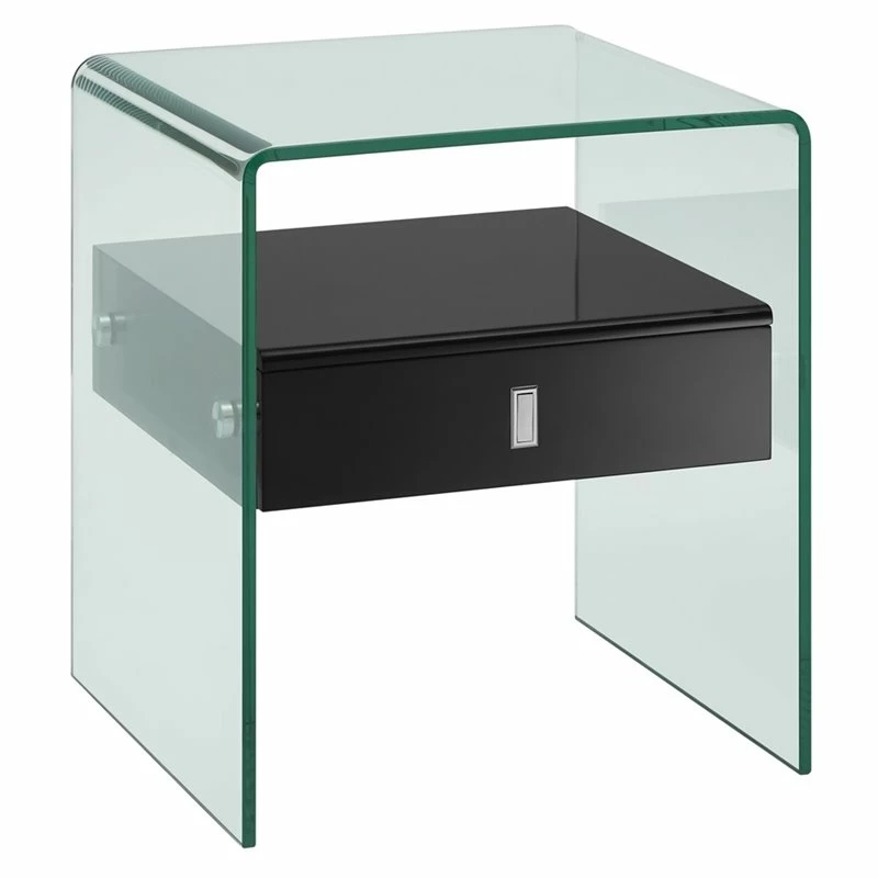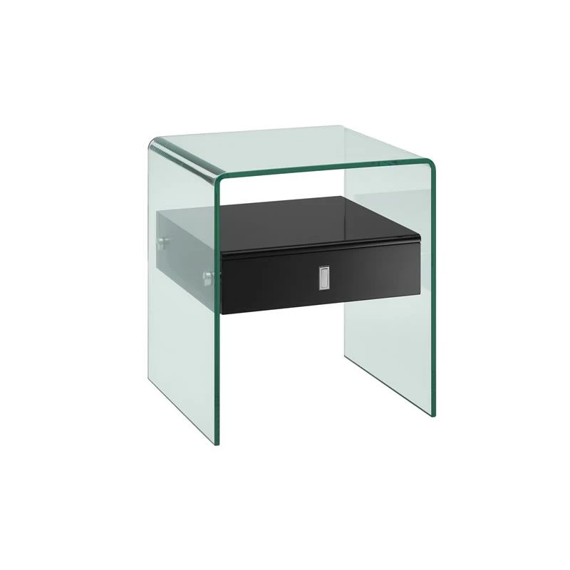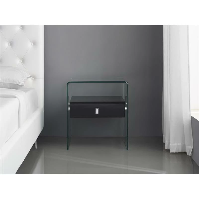The Bari nightstand in high gloss black lacquer with glass features clean, modern lines adding a sophisticated look and edge to any room. Our Bari nightstand is constructed using top commercial grade materials with glass, glass, mdf and features 1 drawer with exceptional quality that are made to last.
