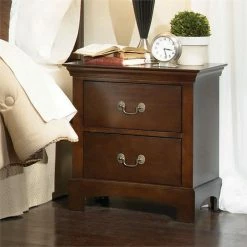 Cheap 😉 Benzara Liam 23 Inch 2 Drawer Wood Nightstand Antique Drop Handles Cherry Brown ✨