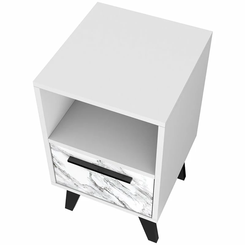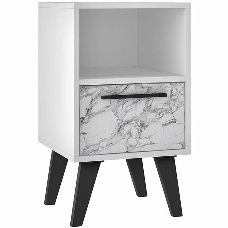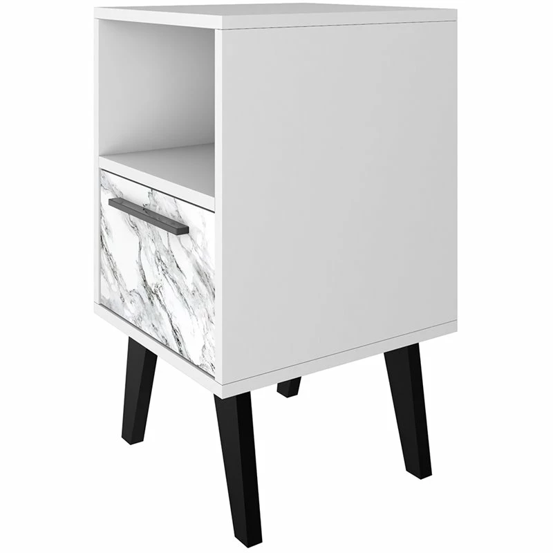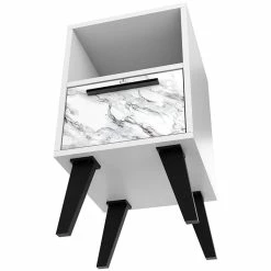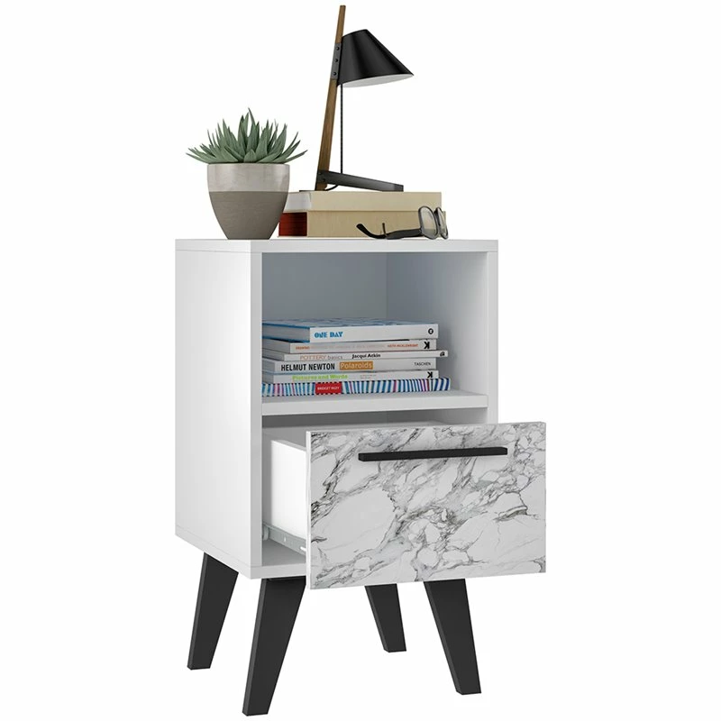 The perfect bedside accompaniment or living room end table, the Eden Home nightstand is both sleek and modern, with its clean lines and Mid-Century design. An open shelf makes it easy to display books and magazines, while a concealed drawer provides interior storage to tuck away any other items, such as remotes, tablets, and more. With minimal assembly required and its versatile style, the nightstand will work well from space to space without compromising on existing decor. Made from the highest quality MDP Engineered wood, In a chic marble design on white, that fits glam, industrial, modern, and boho decor styles!