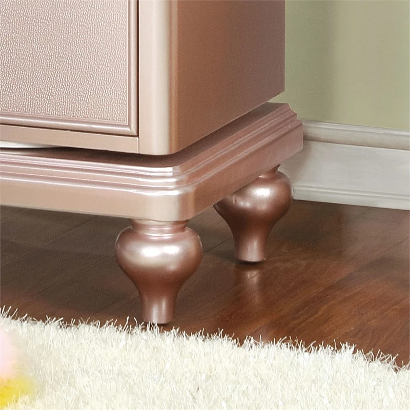 Dress up your bedroom with the Appell Rose Gold Nightstand. Decorated with patterned acrylic accents and tulip feet, this solid wood and wood veneer nightstand provides functional storage space with sturdy English dovetail drawers and a wide 28-inch tabletop.