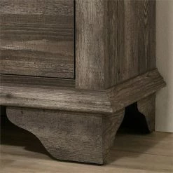 Rustic wood grain details enhance the modern farmhouse character of this charming solid wood two-drawer nightstand. Perfect for a casual and relaxed bedroom, the nightstand delivers spacious drawers that add plenty of space to keep nighttime essentials tucked away. Dovetail drawer construction ensures durability and decorative pulls add a finished look. Decorative feet and a rich gray finish complete this compelling design.