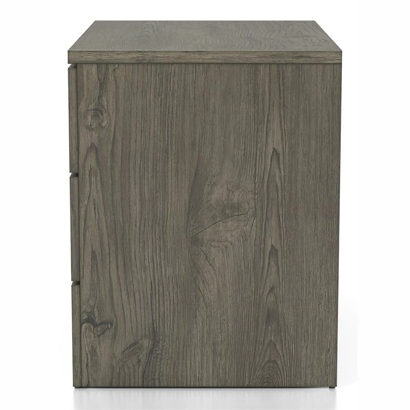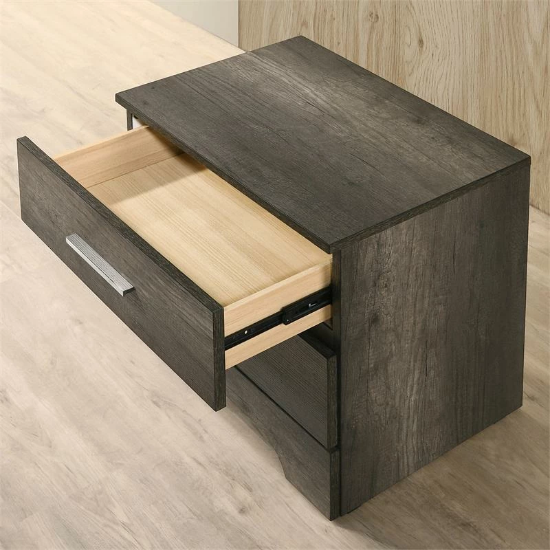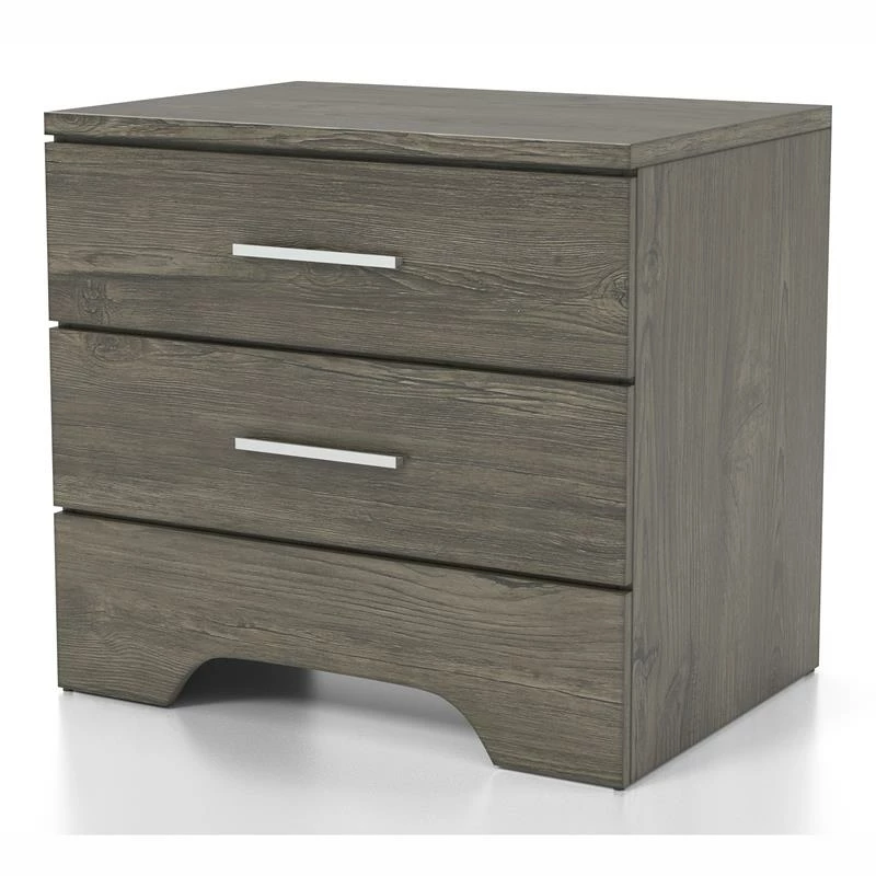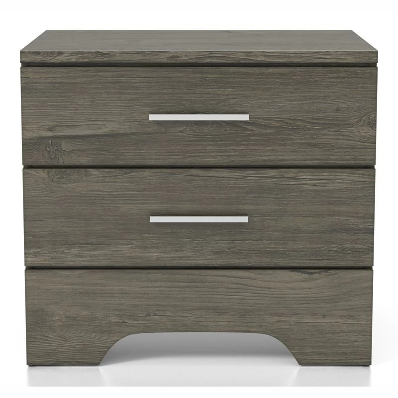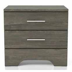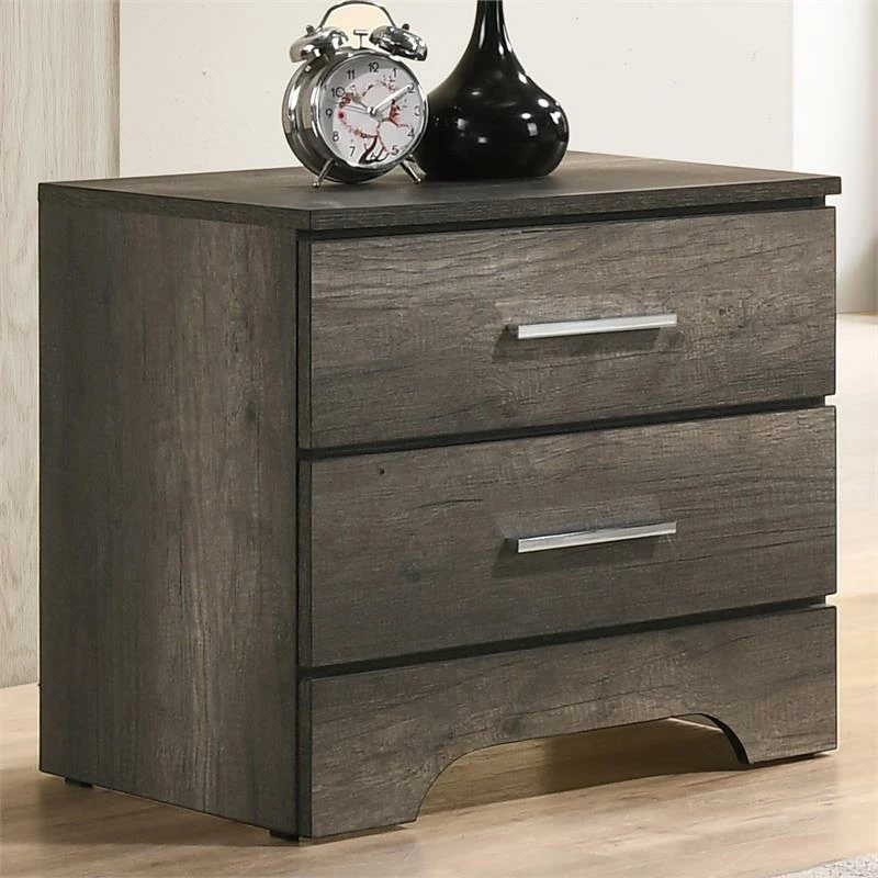 Cool and modern, this two-drawer rustic gray wood nightstand delivers plentiful storage in two spacious storage drawers perfect for keeping nighttime essentials at hand. The eco-friendly nightstand is equipped with ball bearing glides for smooth and quiet operation late in the night when others may be asleep. Toe kick bracket feet and removable silver bar handle style the bedside table with the classy appeal.