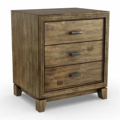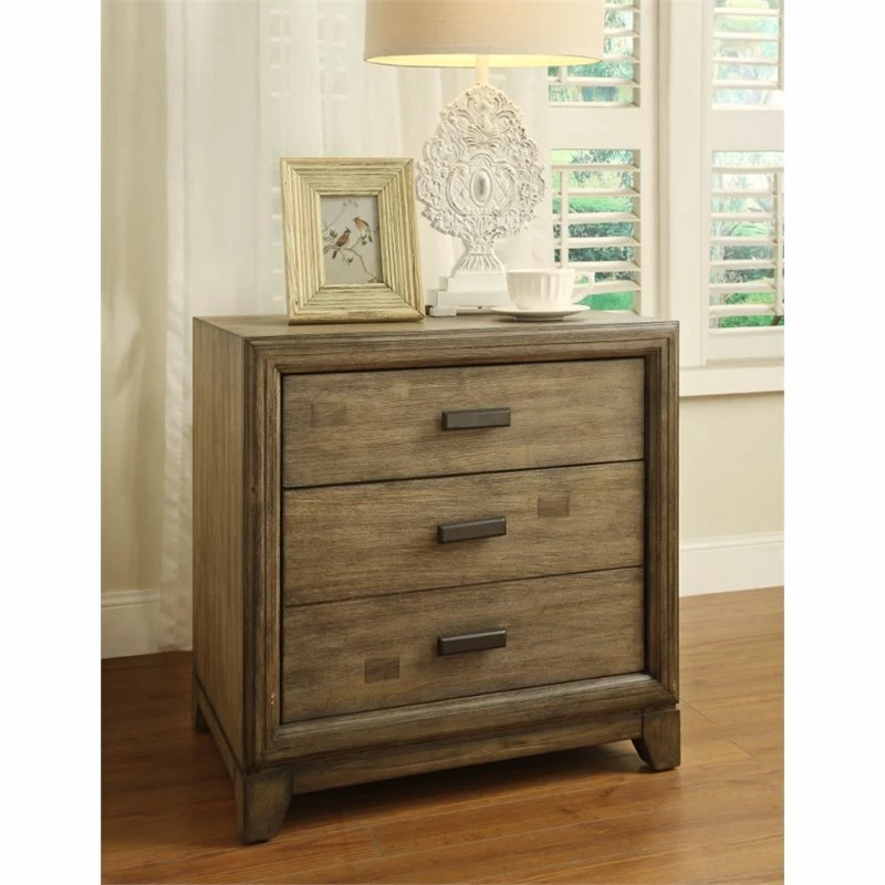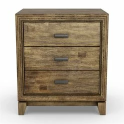 Embrace the Natural Ash finish as it glides cross the crisp edges and fine lines of the Muttex Nightstand with gunmetal brushed pulls. The top drawer features felt-lining for a soft finish so jewelry, glasses, and other fragile items rest unscathed. The lower drawers provide spacious storage for your favorite books and other bedside essentials. Crafted from solid wood, the tapered legs and sturdy frame allow you to dress up the piece with a lamp, framed pictures, and more. Perfect for any type of home style, it delivers character and rustic aesthetic.