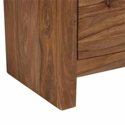 The clean line styling is perfect for the modern home. Featuring select cuts of kiln dried sustainably sourced sheesham wood, its natural wax finish showcases the wood’s unique variations in grain, texture and color. This collection features a full line of dining, bedroom, living room and accent pieces. Sheesham Wood Finish: Acrylic and polyurethane polyester lacquer with a top coat of natural wax.