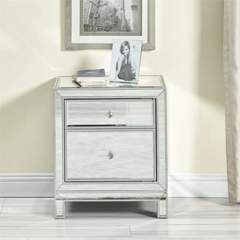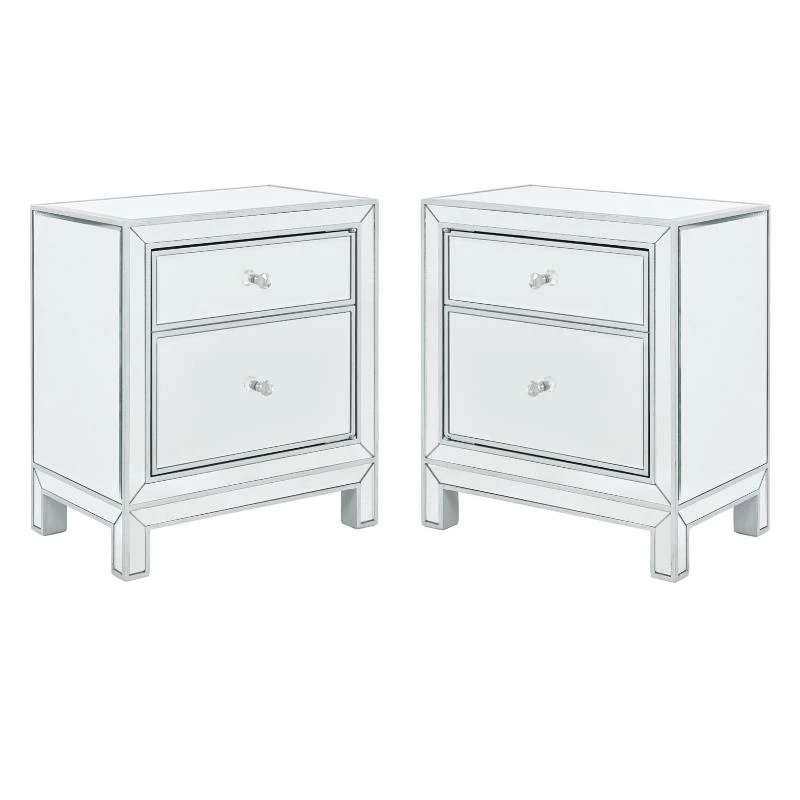 Lowest price online On all Home Square 1 Door Mirrored Nightstand in Antique Silver – Set of 2 – 2634861-PKG