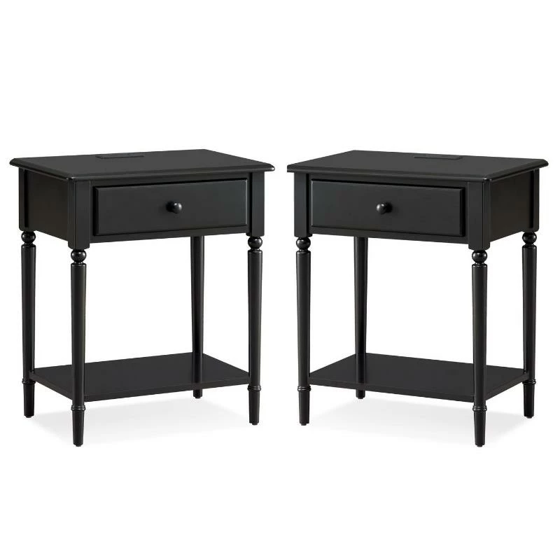 Lowest price online On all Home Square 2-Piece Furniture Nightstand with AC/USB Charger Set in Black – 2468189-PKG