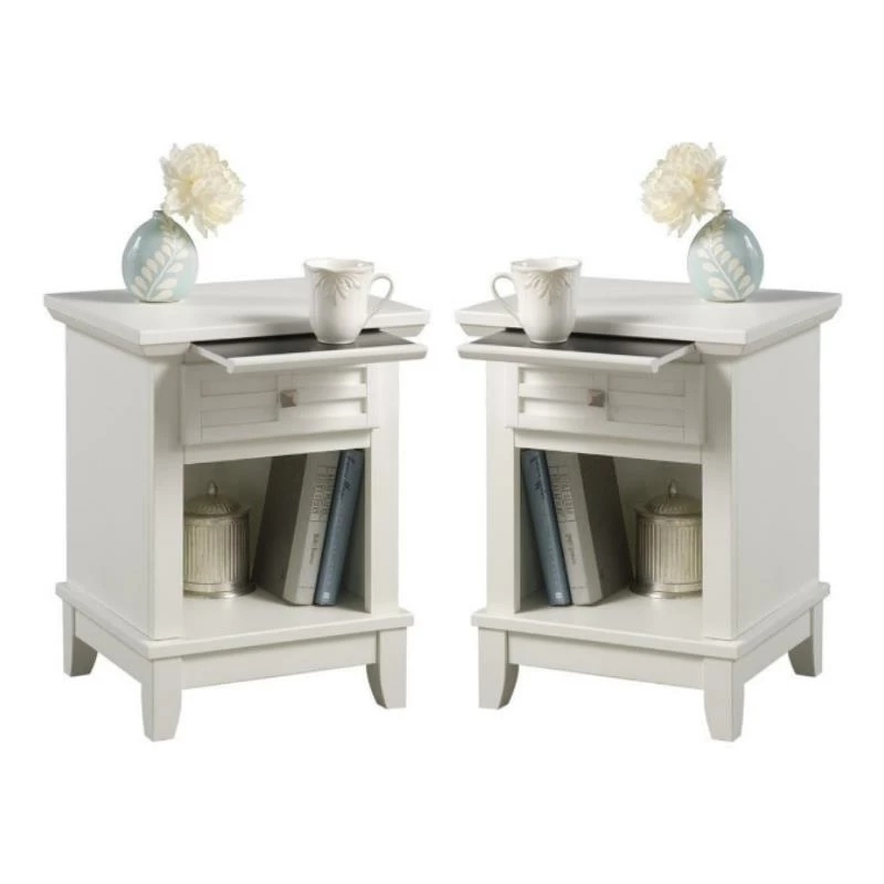 Lowest price online On all Home Square Arts & Crafts Wood Nightstand in Off-White – Set of 2 – 2586920-PKG