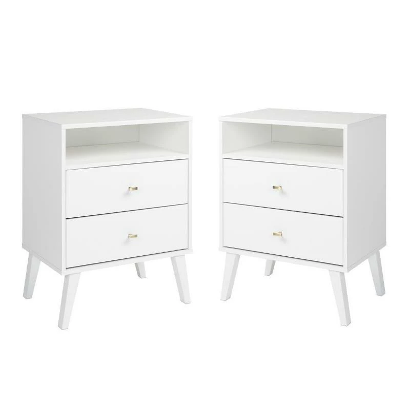 Lowest price online On all Home Square Mid Century Modern 2 Drawer Tall Nightstand Set in White (Set of 2) – 2381384-PKG