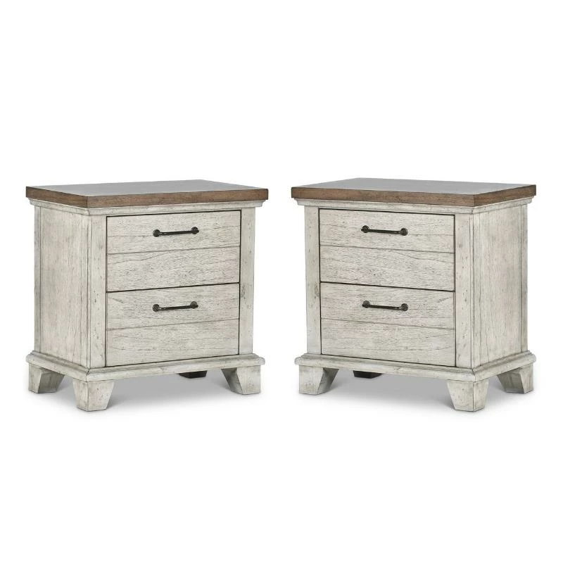 Lowest price online On all Home Square Two Drawer Wood Nightstand Set in Rustic Ivory (Set of 2) – 2387583-PKG