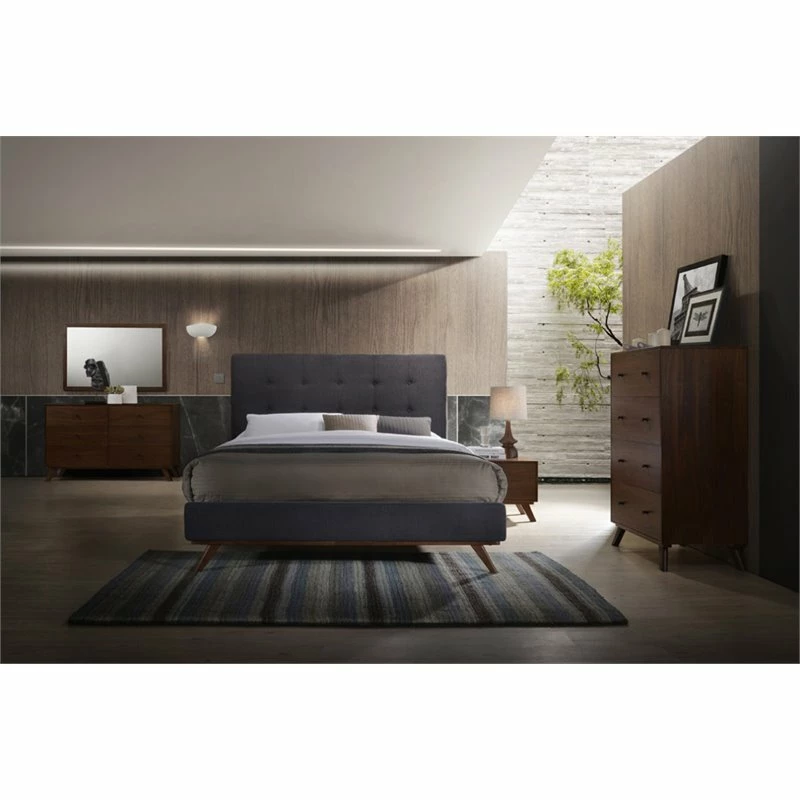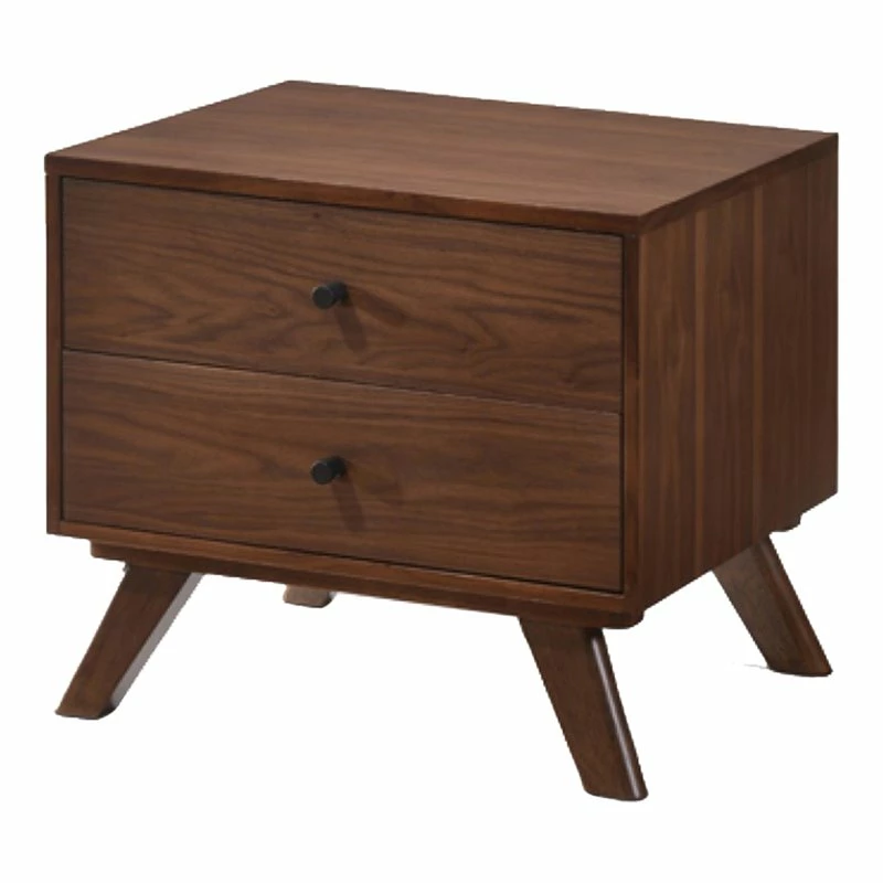 Keep essential items handy while sleeping or resting with the Limari Home Addison Mid-Century Modern Walnut Nightstand in shiny Walnut Veneer finish. For functionality, it features 2 capacious drawers with jutted dark Walnut pulls. Wood markings on the surface added to its beauty. This mid-century modern nightstand stands on tapered durable Walnut finished solid Rubberwood legs.