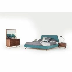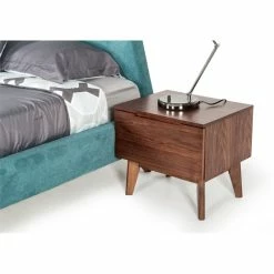 The smooth Walnut Veneer finish of this Limari Home Lewis Mid-Century Modern Walnut Nightstand makes it an eye-stealer. Furnished with a single cavernous drawer, it features wood markings on the surface and a rectangular hollowed area on the upper portion of the drawer that functions as drawer pull. Walnut finished solid Rubberwood tapered legs keep this modern nightstand standing on the floor.