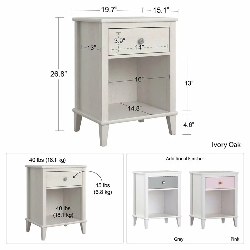 Have everything you need for bedtime in one place with the Little Seeds Monarch Hill Poppy Nightstand. Made of laminated particleboard, the off white woodgrain finish gives the Nightstand an updated, modern look. Two sets of drawer knobs are included so you can customize the look of the Nightstand.