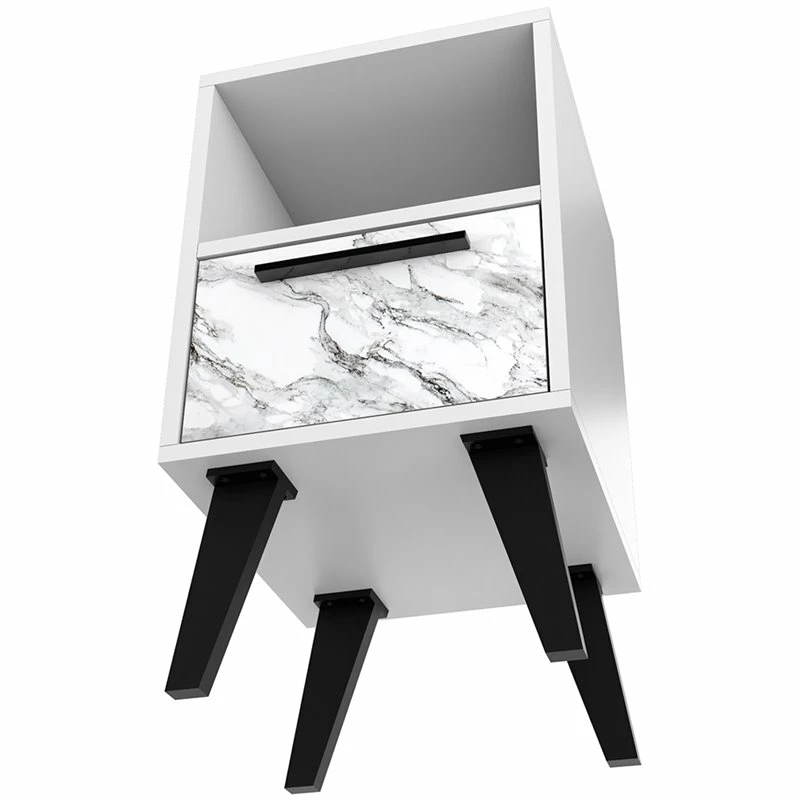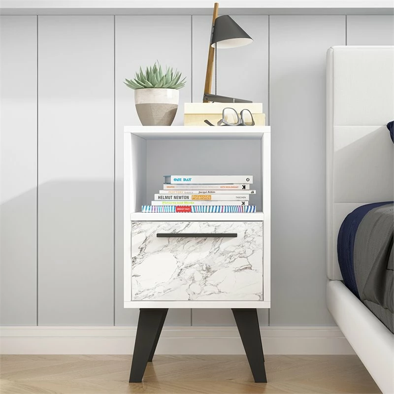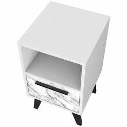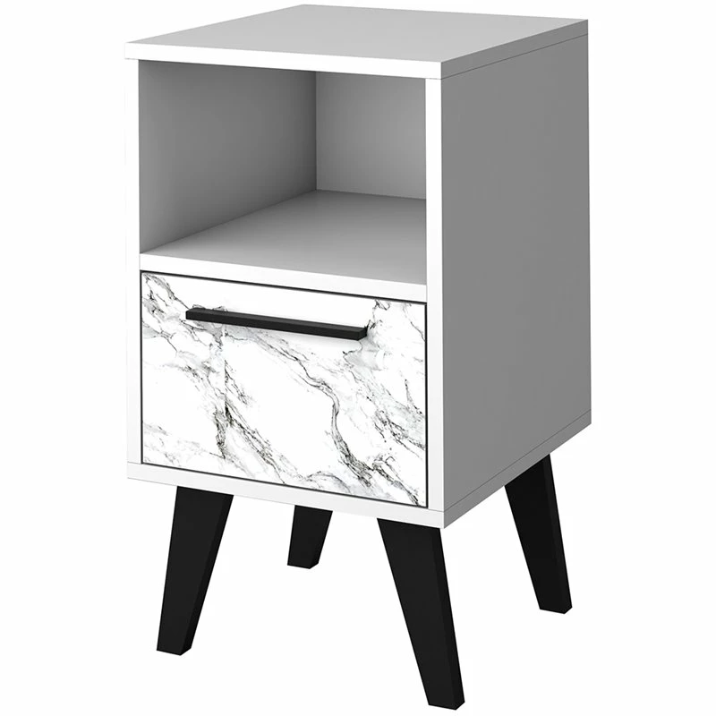 The perfect bedside accompaniment or living room end table, the Amsterdam nightstand is both sleek and modern, with its clean lines and Mid-Century design. An open shelf makes it easy to display books and magazines, while a concealed drawer provides interior storage to tuck away any other items, such as remotes, tablets, and more. With minimal assembly required and its versatile style, the nightstand will work well from space to space without compromising on existing decor. Made from the highest quality MDP Engineered wood, In a chic marble design on white, that fits glam, industrial, modern, and boho decor styles!
