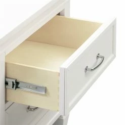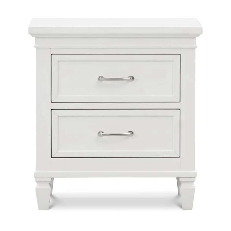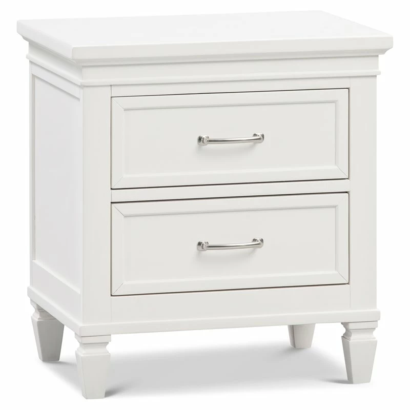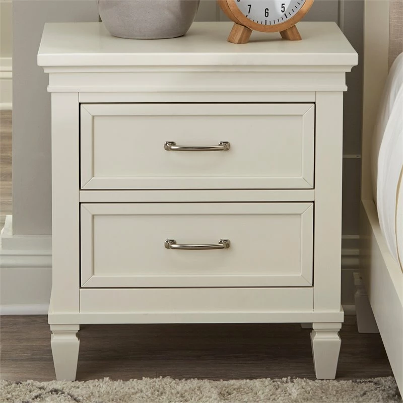 Bask in romantic French country inspired style. Nightstand offer spacious drawers with dovetail construction and self-closing glides, classic raised molding and satin nickel drawer handles for easy transition throughout the home.