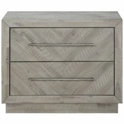 Rustic and contemporary. The Alexandra collection’s appeal comes from the roughhewn Acacia used in its creation. Hand-selected planks of solid wood are carefully sanded, stained and whitewashed for a driftwood appeal that accentuates the active grain and draws out natural knots and markings from the milling process. They are then inlaid over plywood to create a handsome herringbone pattern and finished with thin metal bar pulls for the crowning contemporary touch. Dust frequently with a clean, lint-free cloth. Avoid using oily polishes or waxes. Avoid exposing your furniture to strong sunlight, heat outlets, open windows or dampness. Never allow liquids or chemicals to sit on your furniture. Manufacturer will ship replacement parts at no charge for up to 1 year from date of delivery to correct defects determined at manufacturer’s discretion to be related to manufacturing or workmanship.