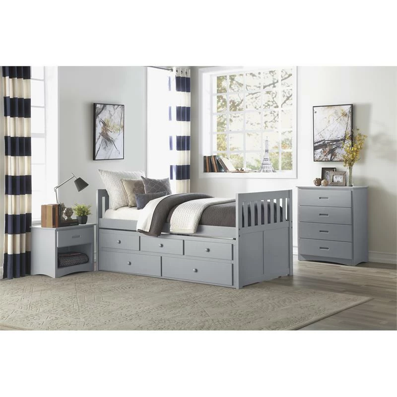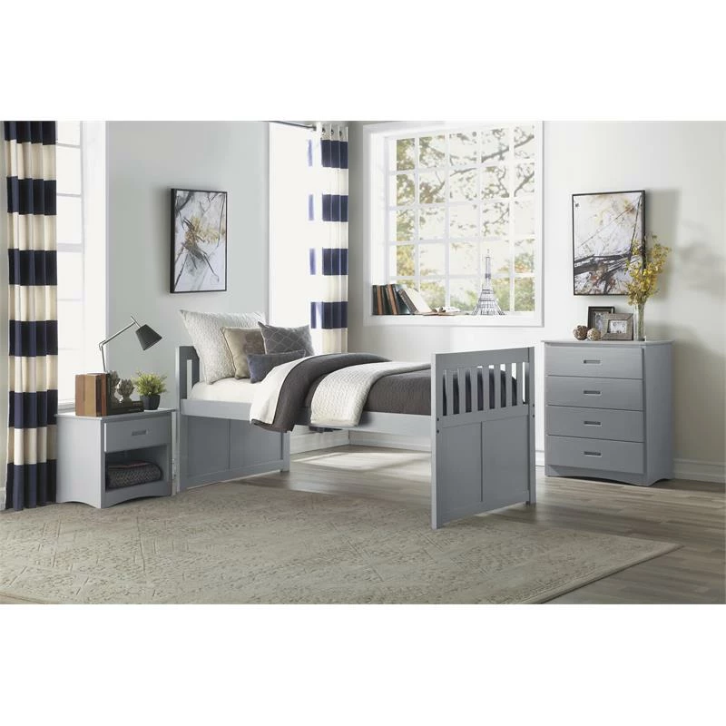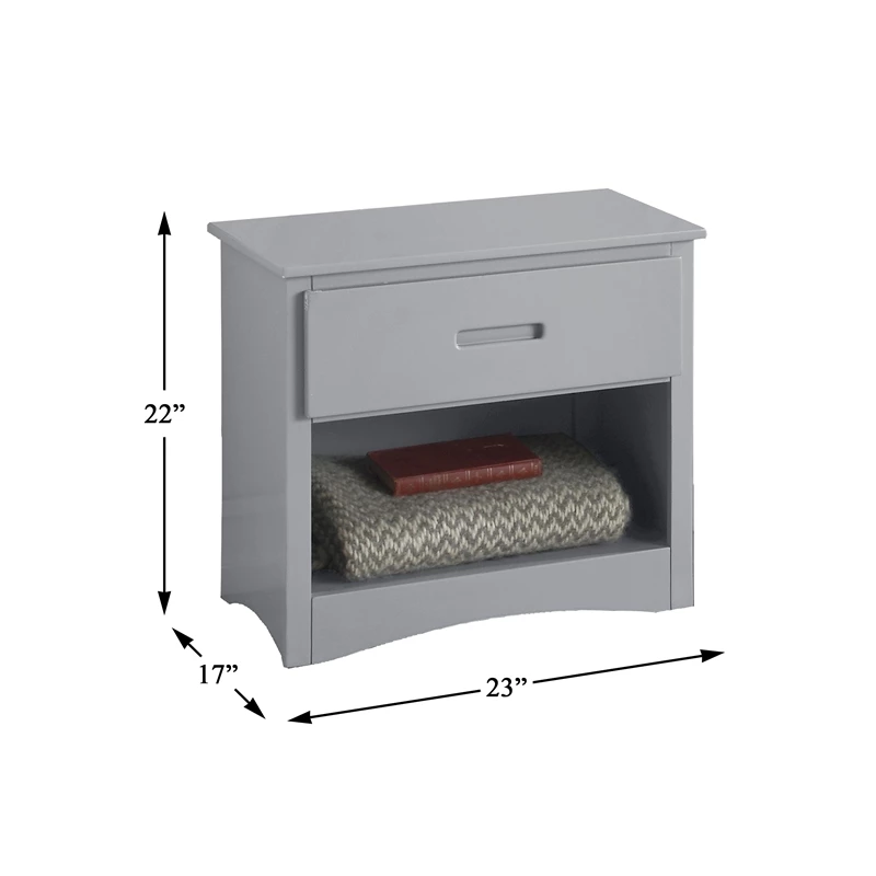 The transitional design of the Pemberly Row Collection’s nightstand is featured in a gray finish making it an appropriate choice for a number of youth bedroom settings. Also available: twin over twin bunkbed, twin over full bunkbed, full over full bunkbed, twin over twin trundle bed with two built-in drawers, underbed dual toy boxes, twin trundle, dresser, mirror and chest.
