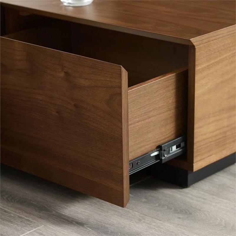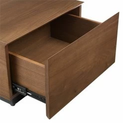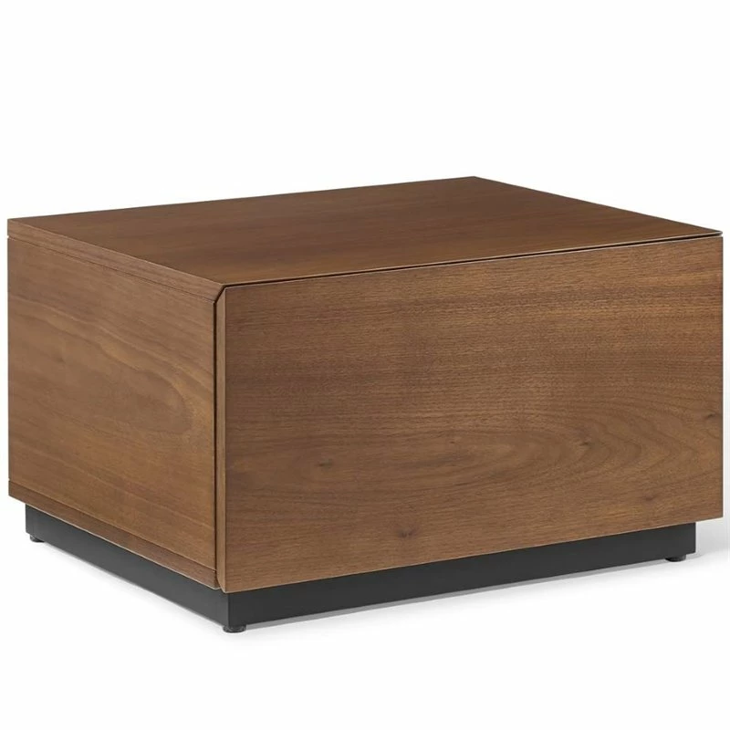 Introduce opulent energy to your bedroom decor with the elegantly distinguished Nightstand. Solidly constructed from MDF with beautifully grained brown walnut veneer, the Accent Nightstand claims center stage in your master suite or guest room setting. The Nightstand has a soft-close easy-glide drawer for hidden storage and non-marking foot caps to protect your flooring. Raw urban appeal exudes from the sleek nightstand, allowing this wooden accent piece to make a statement in your living room as a side table or bedroom as a nightstand. Assembly required.