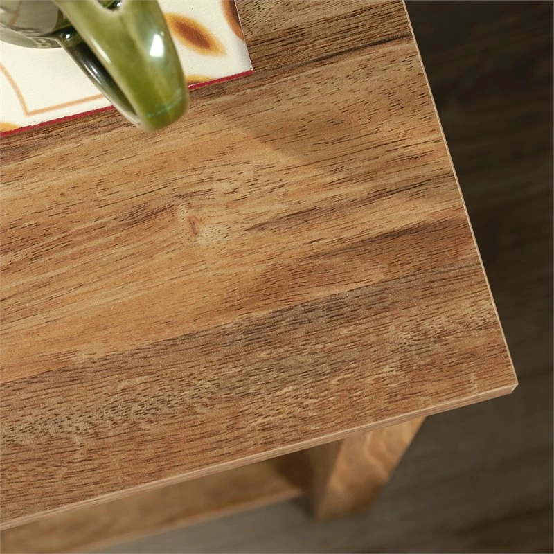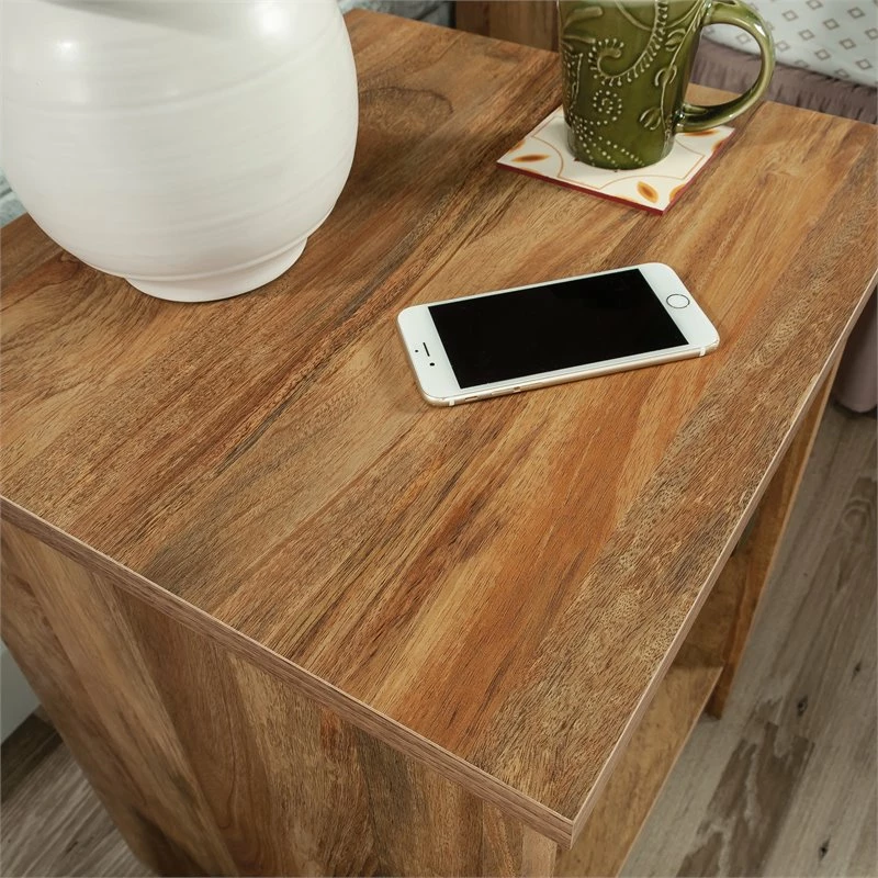 Upgrade your bedside storage with this nightstand from the Pemberly Row collection. This nightstand with open storage features a drawer with metal runners and safety stops for your bedtime essentials—a glass of water, your alarm clock, your favorite book, and a candle. This nightstand with drawer has an open shelf that provides additional storage for your magazines, home décor, small organizing bins, and more. Your new bedside table with drawer is finished on all sides for versatile placement around the home—it will look polished and complete from every angle. The bedside table with storage features a T-slot drawer system and slide-on moldings that makes for an easy assembly process. Finished in a warm Sindoori Mango, this nightstand will fit seamlessly into any bedroom.