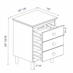 Move right into your comfort zone with this set of contemporary bed End Tables. The matching duo provides the perfect statement piece for the modern minimalist, while their tapered legs subtly allude to a sleek, Mid-century-inspired design. Accented by antique brass nobs, three drawers offer concealed refuge to your nighttime necessities, like your before-bed skincare routine or collection of current reads. The accent table’s solid wood build and fuss-free aesthetic sports the ideal tabletop to tastefully style in your personal space, guest bedroom, or home office. Pair it with the matching dresser to complete your space’s minimally chic feng shui.