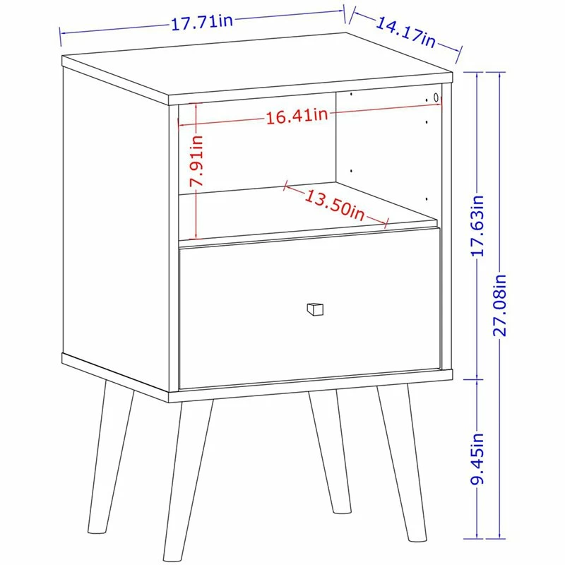 The perfect blend of style, functionality, and quality craftsmanship, the Pemberly Row Mid-Century Modern Nightstand is as practical as it is a statement piece. A cool metal handle attachment, the bottom drawer is perfect for stashing away books, magazines, or electronics, while the open top shelf is prime for keeping items on display. Top it off with favorite photographs or artful confections to create a bold accent, beautiful in any space or decor.