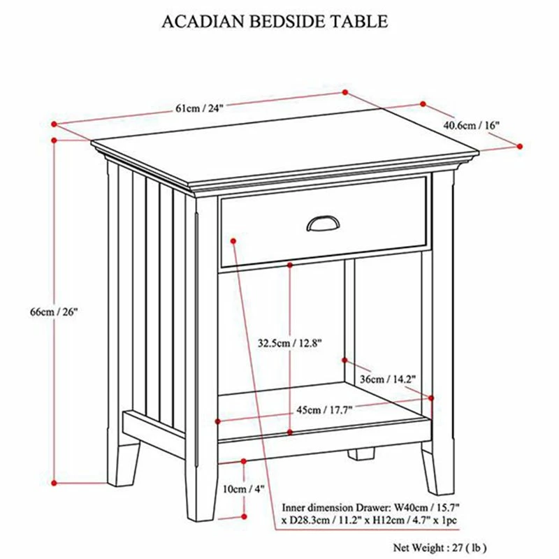 Good things really do come in small packages. Nothing could illustrate this better than the design of our Acadian Bedside End Table which features one drawer and a large open storage area. The table is sized perfectly to allow room for a table lamp, book and family photos. This flexible piece can be used as a bedside table, side table, end table or in multiple other settings.