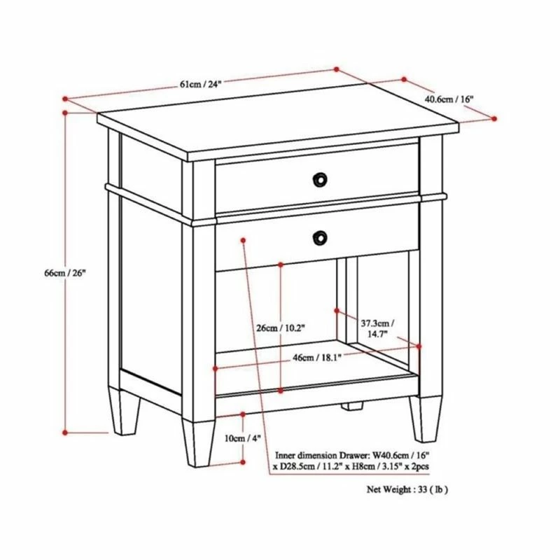 Good things really do come in small packages. Nothing could illustrate this better than the design of our Carlton Bedside End Table which features two drawers and an open storage area. The table is sized perfectly to allow room for a table lamp, book and family photos. This flexible piece can be used as a bedside table, side table, end table or in multiple other settings.