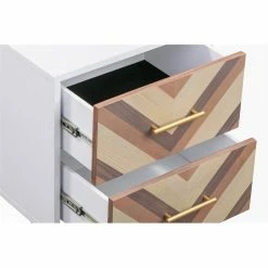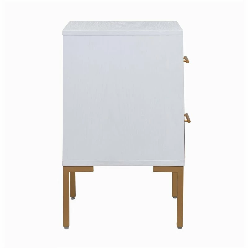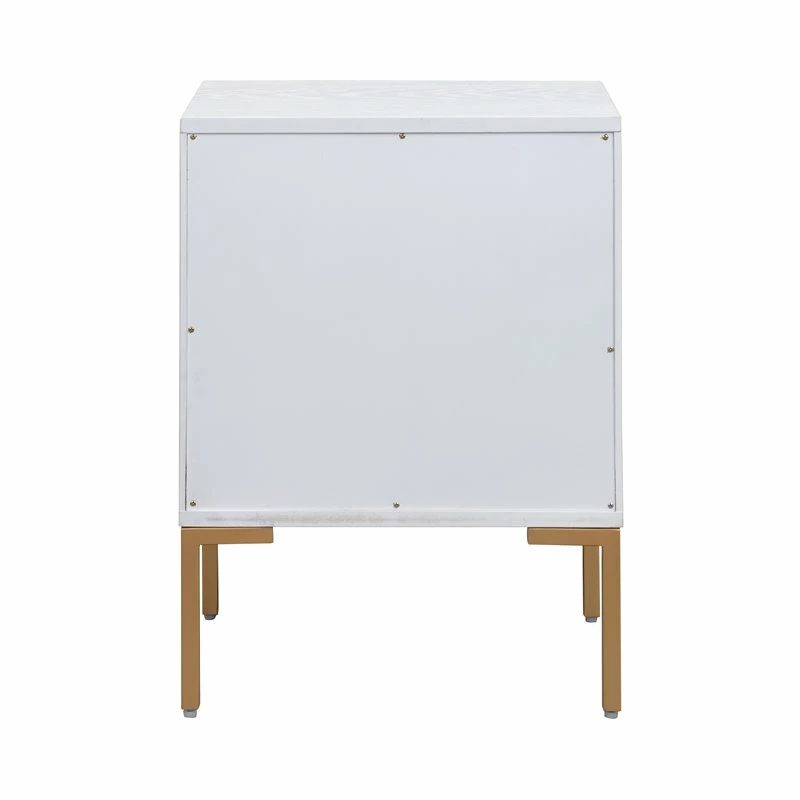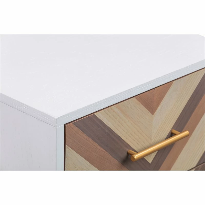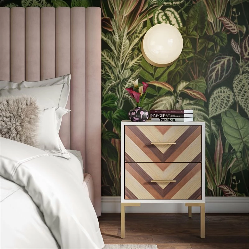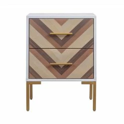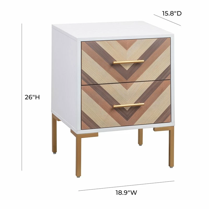 Chic in chevron, the Quinn nightstand or side table will make a statement beside a chair, sofa or bed. Stainless steel brushed gold legs and matching hardware help create the perfect combination of rustic and glam forming a sensational look.