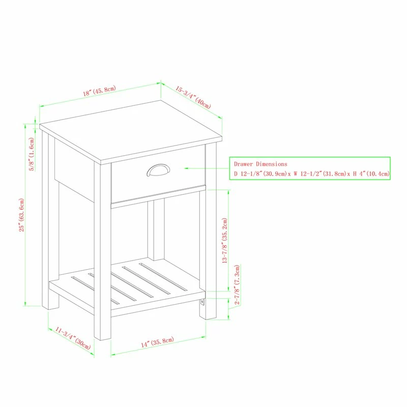 Whether you’re looking to keep things quaint and country or simply organize your home, this one-drawer farmhouse nightstand will satisfy your design desires. The single top drawer with a cup handle features telescoping metal drawer glides for a smooth push and pull track for convenient closed storage. The lower slat style shelf creates open storage while infusing farmhouse style. Use this accent table in the living room or home office for some sneaky storage. Pair with the matching entry table to make a complete set in your home.
