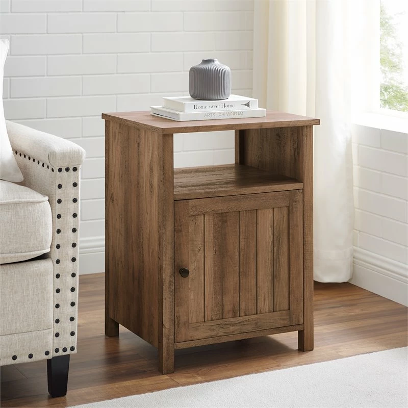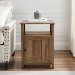 Keep life simple with this grooved door side table. An open cubby rests at the top of the unit, which provides a great place to store electronics, small boxes, or other accessories. The bottom of the end table has a door with soft-close hinges. Create a coastal, farmhouse, or traditional tone in your living room in a snap! Use in the bedroom for easy access to nighttime essentials.