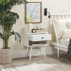 Wholesale ๐ Walker Edison Mid Century Modern 1-Drawer Bedroom Nightstand In White โค๏ธ
